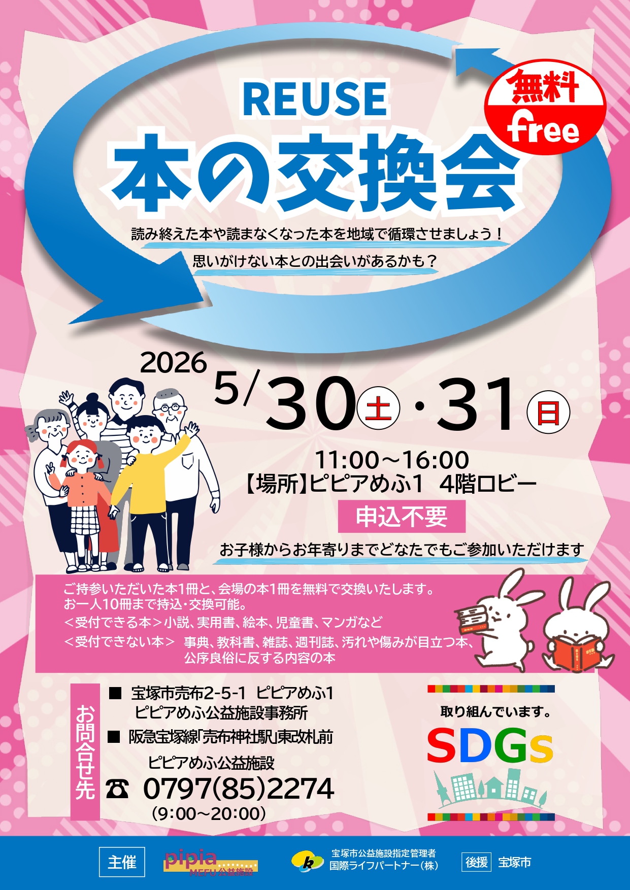 ご持参いただいた本1冊と、会場の本1冊を無料で交換いたします。お一人10冊まで持込・交換可能。