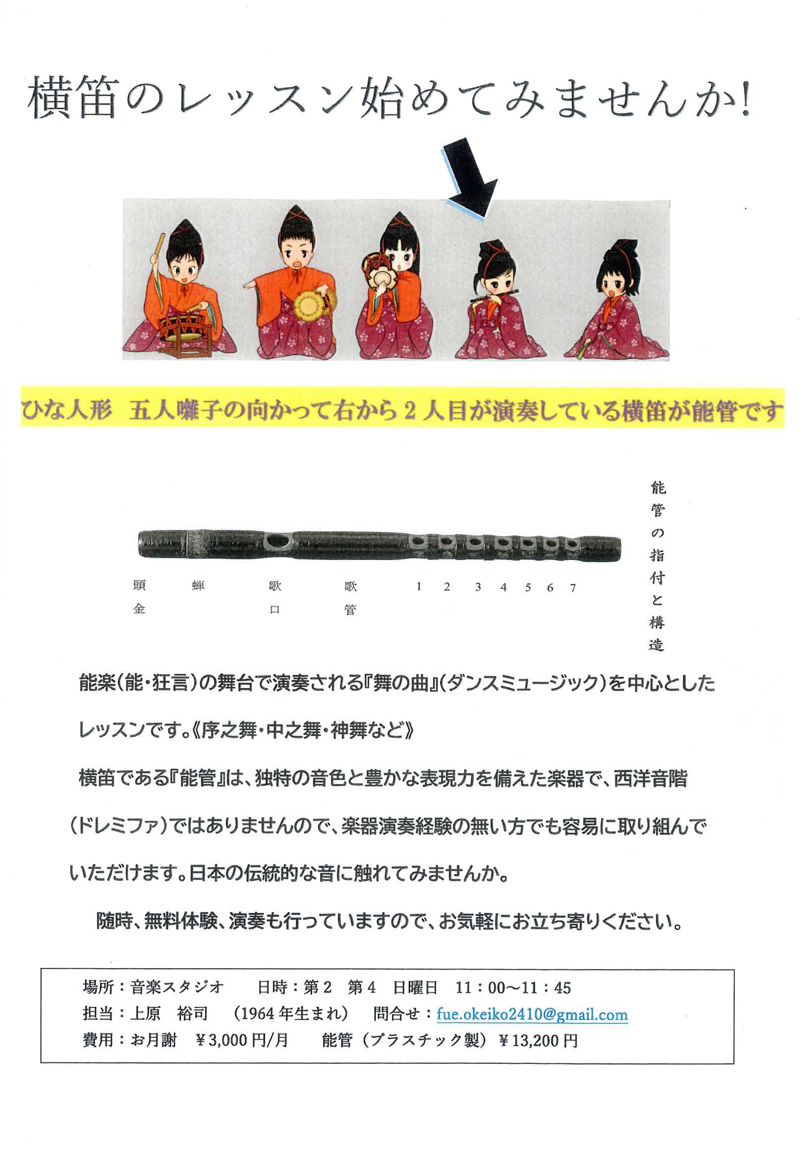 能・狂言や横笛に興味をお持ちの方、笛を吹く楽しみをお届けします!